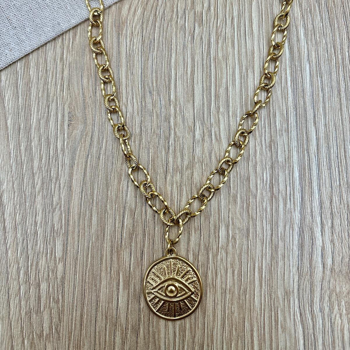 Κολιέ ατσάλινη αλυσίδα σε χρυσή απόχρωση και στοιχείο μάτι.