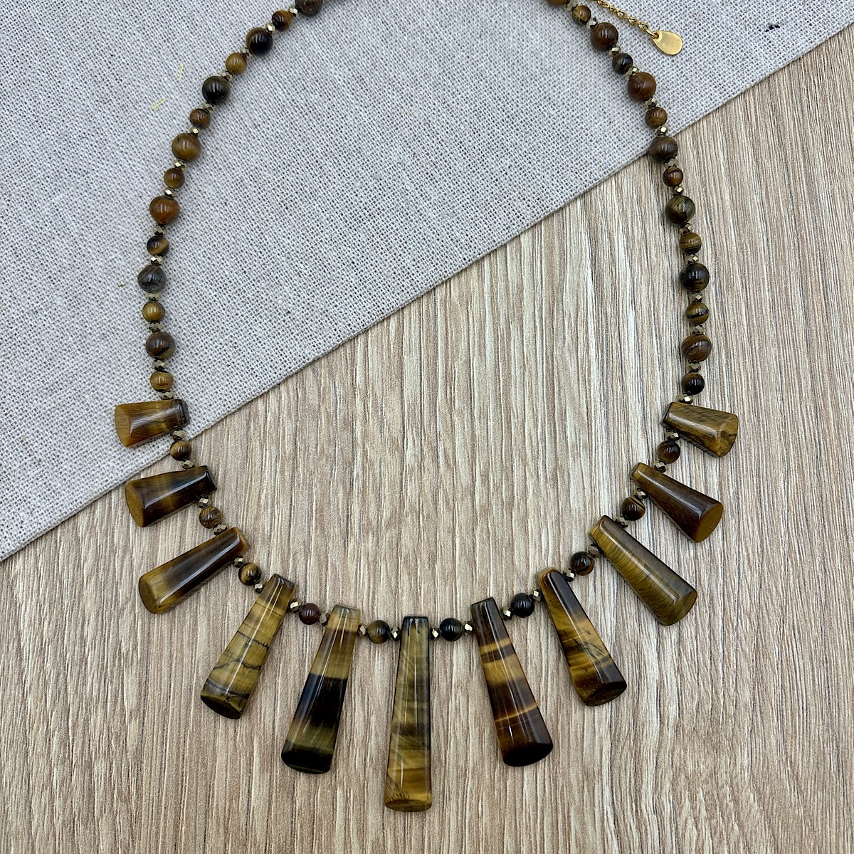 Κολιέ με μάτι της τίγρης σε καφέ απόχρωση.