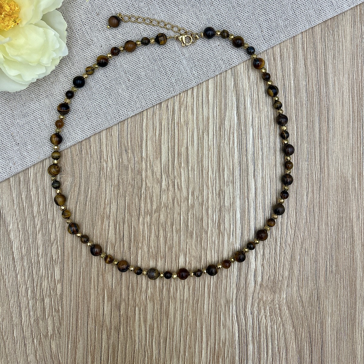 Κολιέ με μάτι της τίγρης σε καφέ απόχρωση.