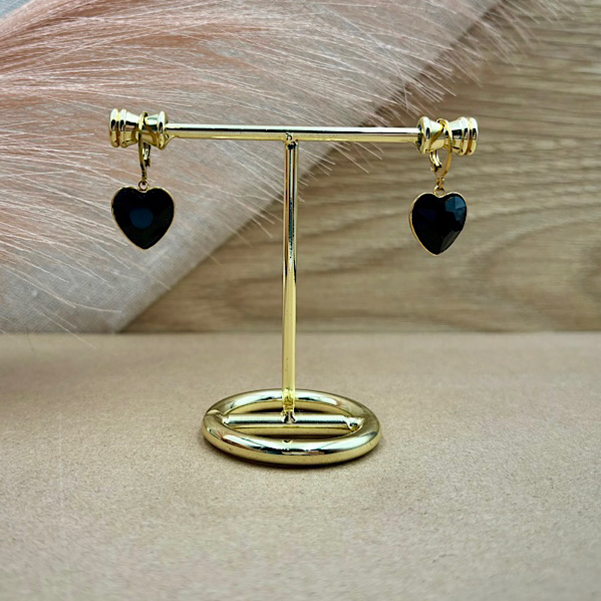 Σκουλαρίκια ατσάλινα καρδιά επιχρυσωμένα με μαύρα κρύσταλλα.