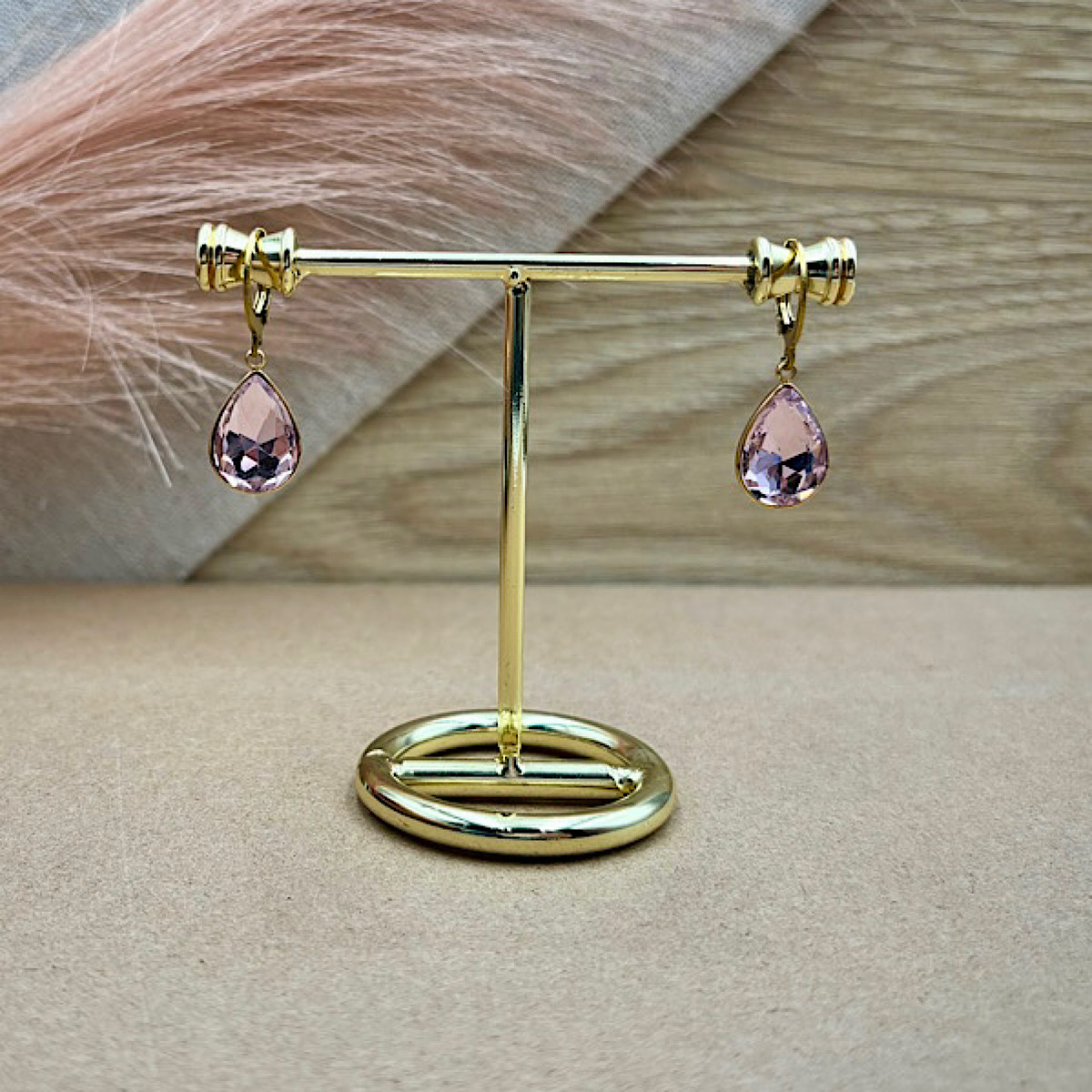 Σκουλαρίκια ατσάλινα σταγόνες επιχρυσωμένα με ροζ κρύσταλλα.
