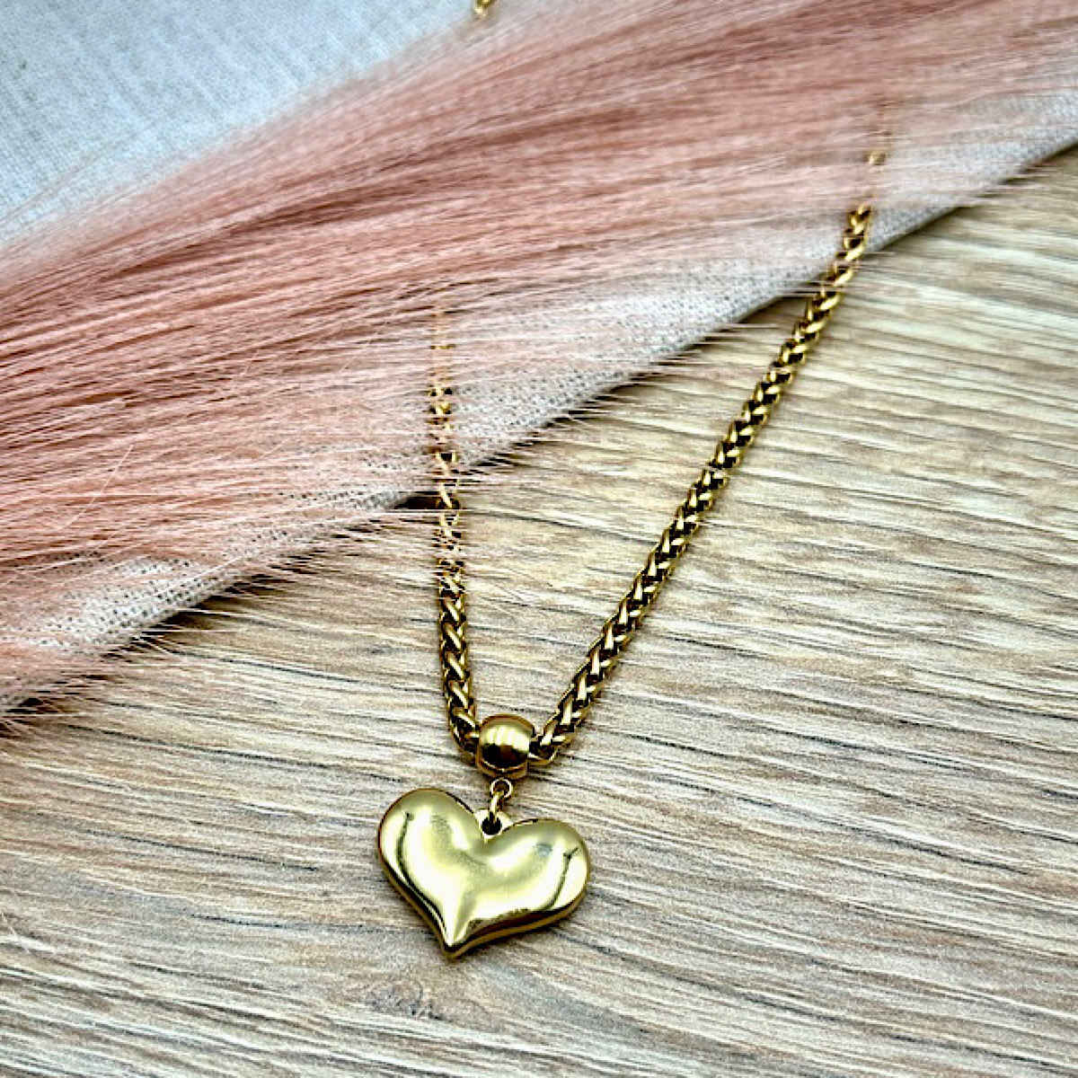 Κολιέ ατσάλινο με καρδιά επιχρυσωμένο.