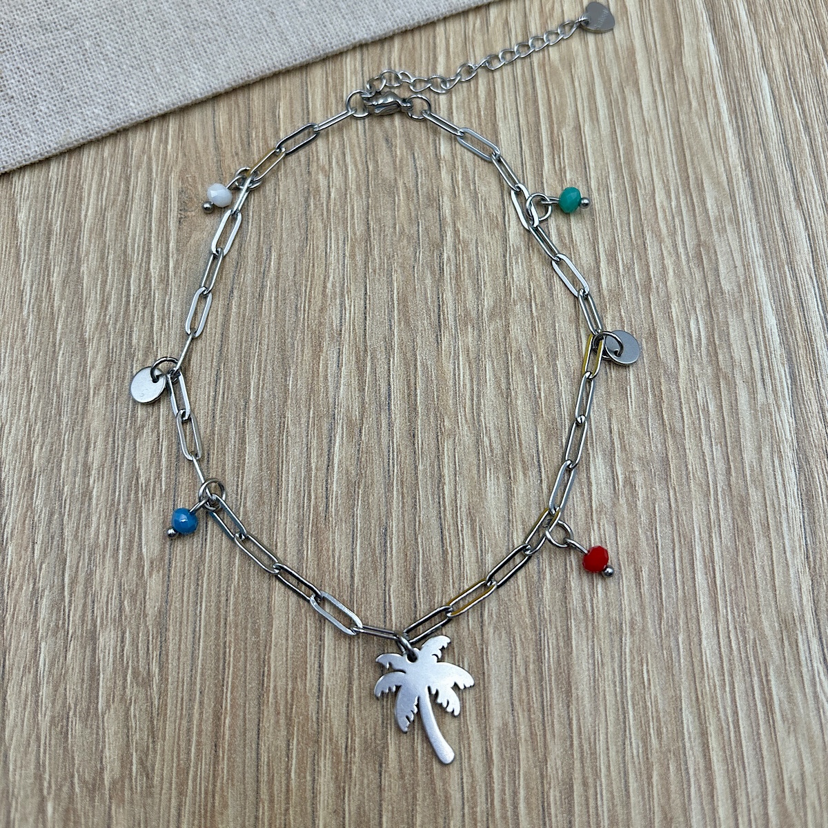 Βραχιόλι ποδιού ατσάλινη αλυσίδα με κρεμαστά μοτιφ και κρύσταλλα.